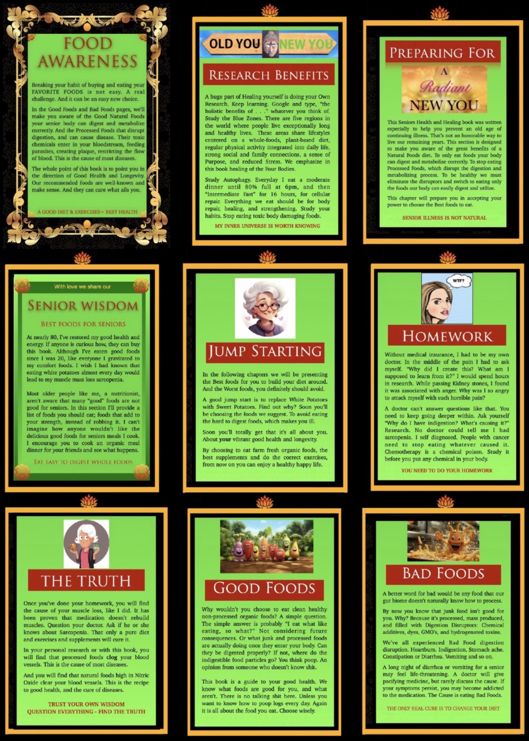 If you have a strong Death Urge, this wisdom is only a reminder. That if you want to be healthy and happy, disease free, now and for many quality years of life to come, take the time, study and figure out how you can create meals with all these wonderful foods.