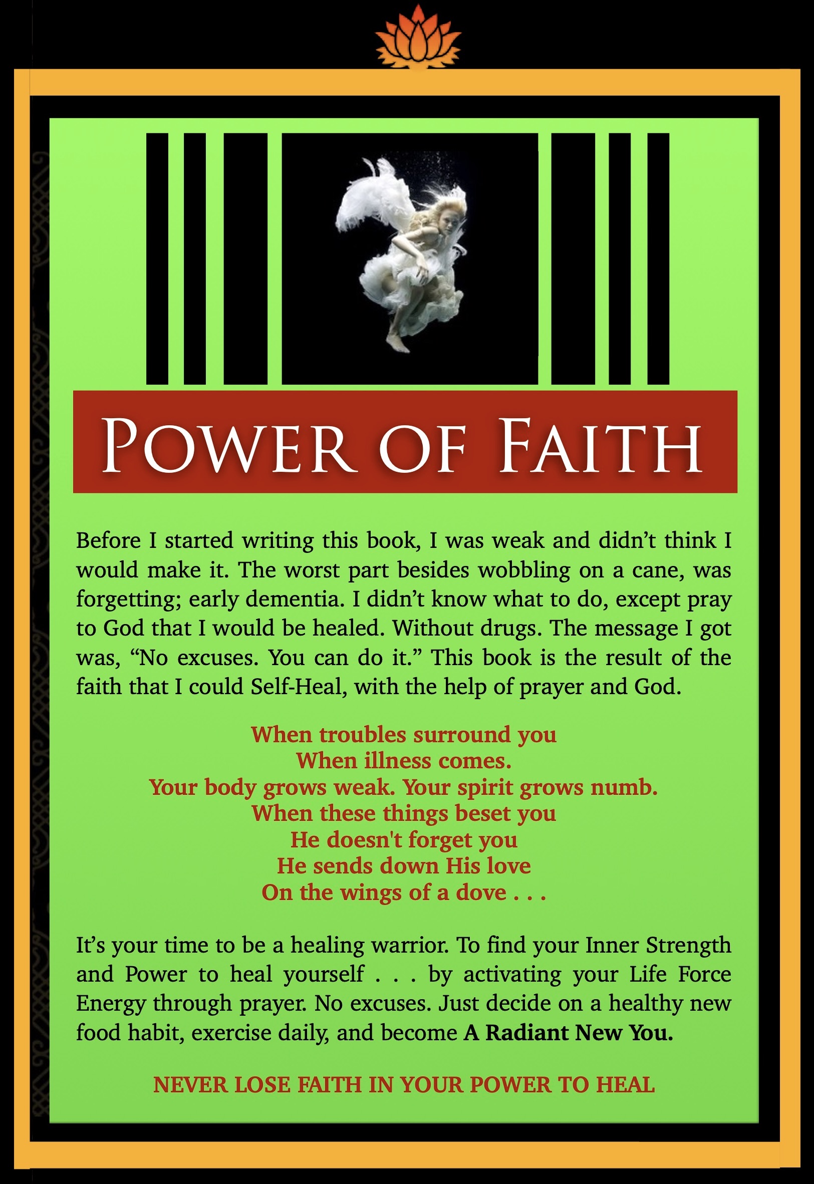 I am writing only for those people who wish to change the course of their life. This is my loving and serving offering. It´s up to you to qualify yourself, using your Will Power, by placing your own LIFE URGE above any remnants of a DEATH URGE. To keep questioning – How strong is my desire to live a long disease free quality life?