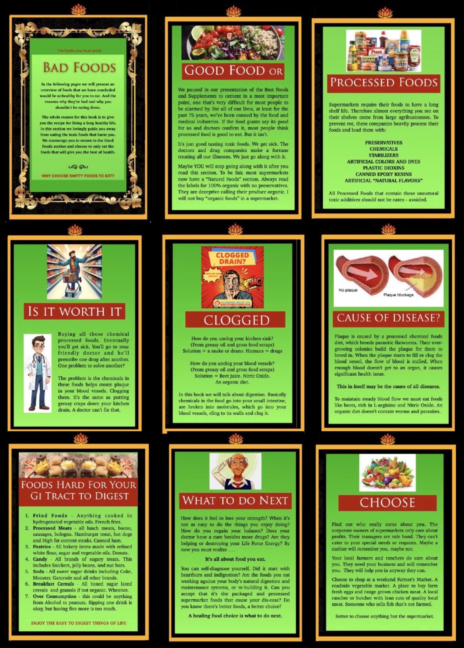 It’s most important to note what is NOT listed in Chapter Three. In order to protect your good health, vitality and long life, you’ll need to be vigilant and aware of  the FAKE food industry saboteurs, their poisons which will destroy your good health and shorten your life.